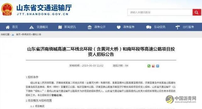 本次招標項目總里程約670公里,投資估算總金額約1186億元,計劃工期除濟南繞城高速二環線北環段(含黃河大橋)為42個月、高青至德州公路高青至商河段為48個月外,其余均為36個月。公告說,經山東省人民政府同意,濟南繞城高速二環線北環段(含黃河大橋)和南環段、高青至德州公路高青至商河段、濟南至青島中線高速公路濰坊至青島段及連接線、萊州(明村)至董家口公路、臨沂至滕州公路、濟南至微山高速濟南至濟寧新機場段項目投資人招標,山東省交通運輸廳委托山東省交通運輸廳公路局作為該項目的招標受托人,山東省交通運輸廳公路局委托山東英大招投標有限公司負責本項目的招標工作。